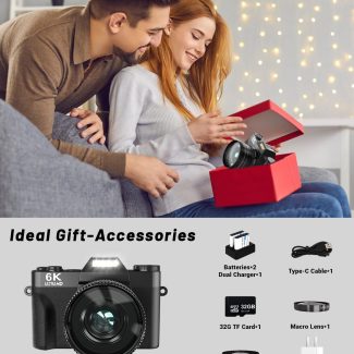 2024 Upgrade VJIANGER Digital Camera for Photography Vlogging Camera for YouTube with WiFi, 180° Flip Screen, 16X Digital Zoom, 52mm Lens, 2 Batteries, 32GB Micro SD Card(Black)